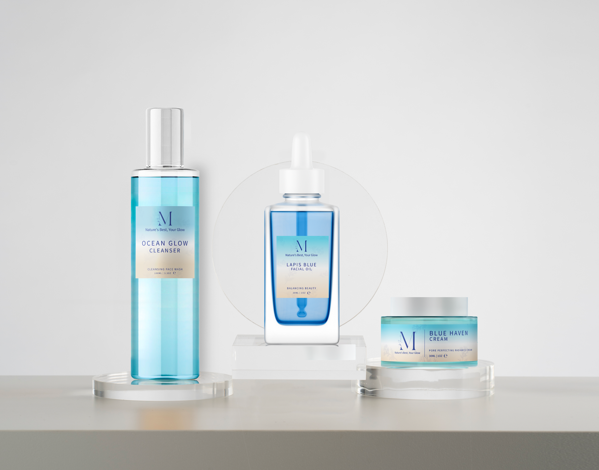 Achieve a naturally radiant glow with the Nature’s Best Set, a three-step skincare routine powered by pure, nature-inspired ingredients. This essential set includes the Ocean Glow Cleanser, Lapis Blue Facial Oil, and Blue Haven Cream, each enriched with blue tansy and other naturally derived botanicals. Free from harsh chemicals and synthetic additives, these products work together to gently cleanse, hydrate, and rejuvenate, leaving your skin beautifully nourished and glowing from within. Embrace the best of nature for a complexion that radiates health and vitality.